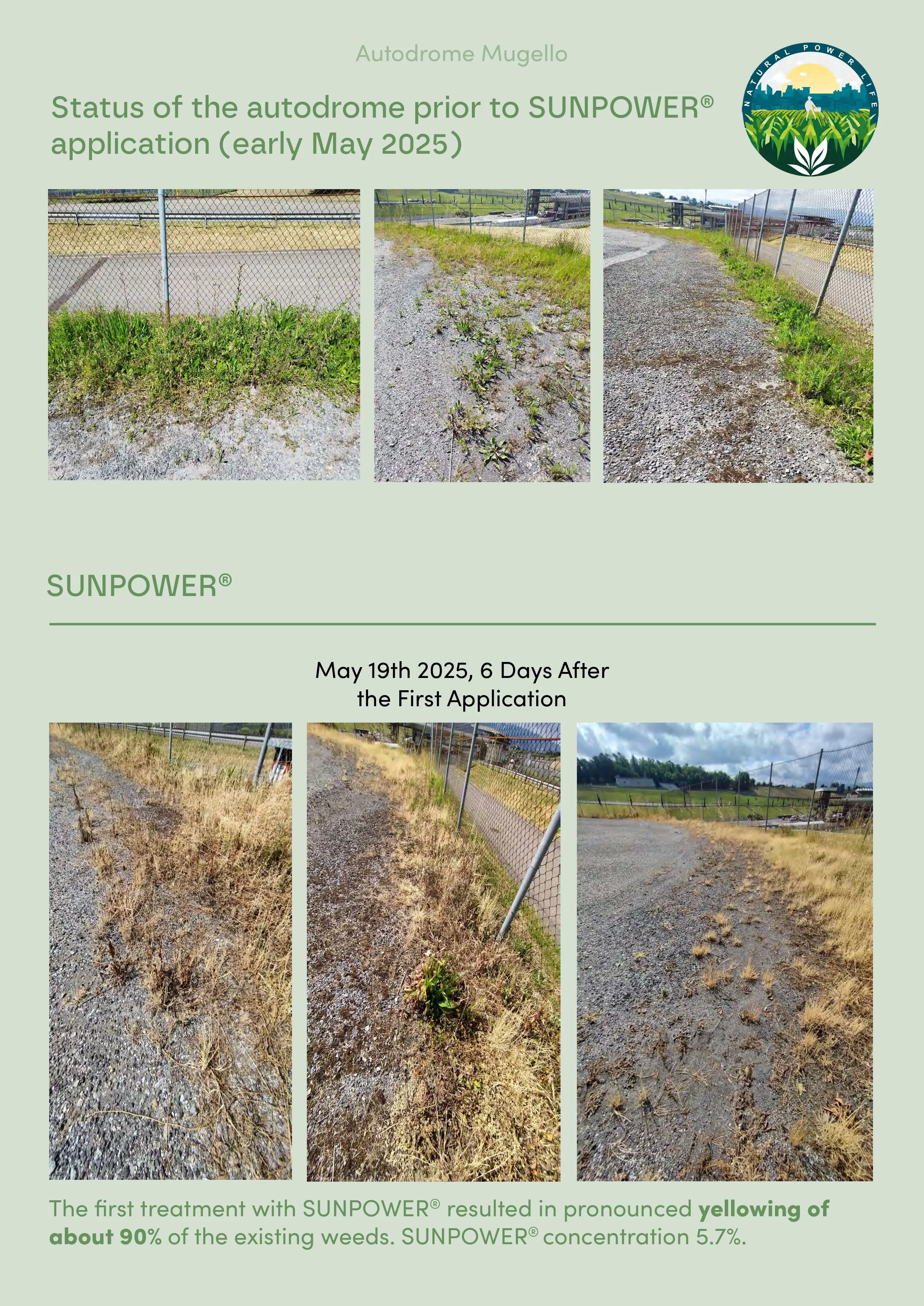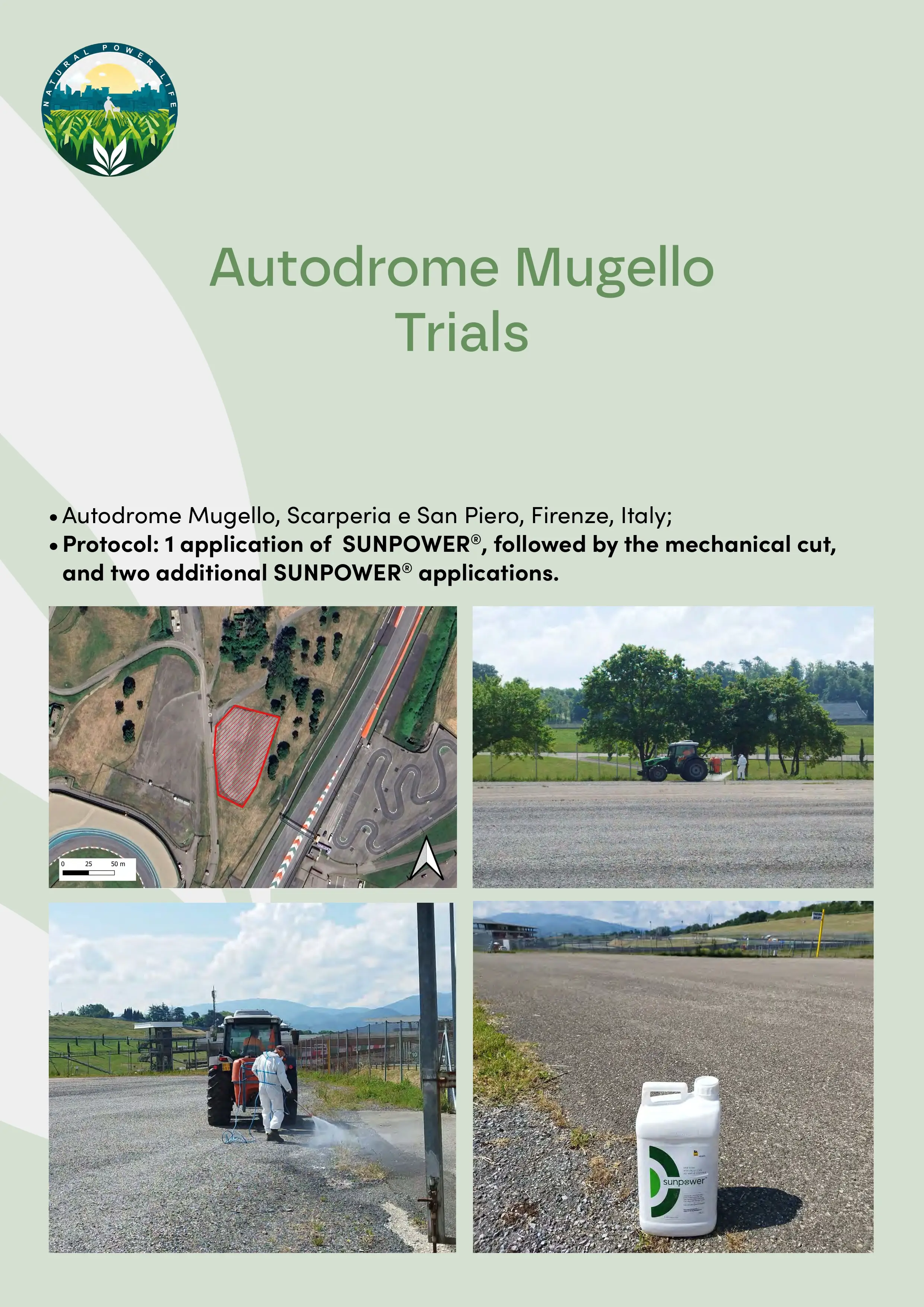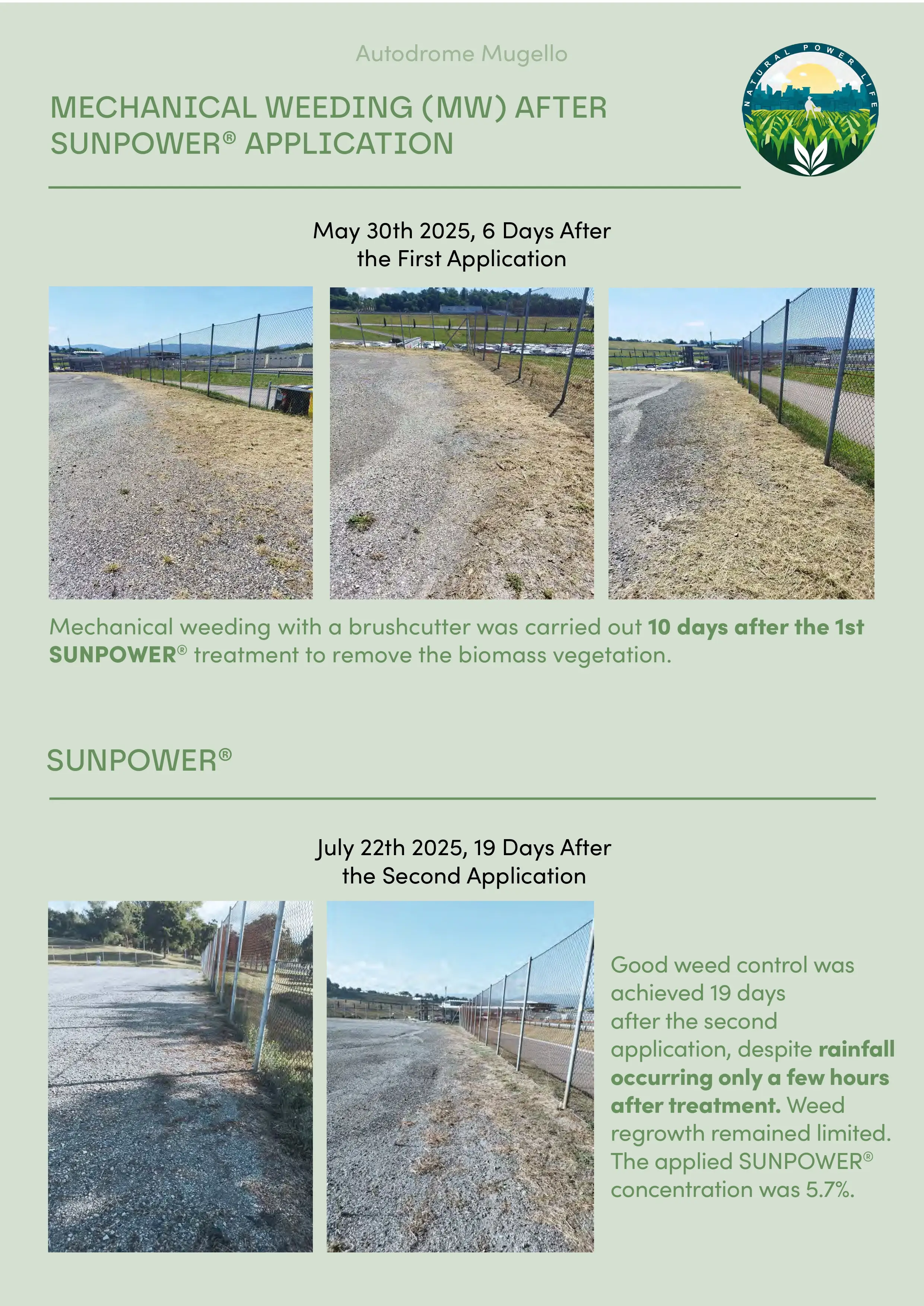 Autodrome Mugello (Scarperia e San Piero, FI): mechanical weeding (brushcutter) vs. SUNPOWER®.