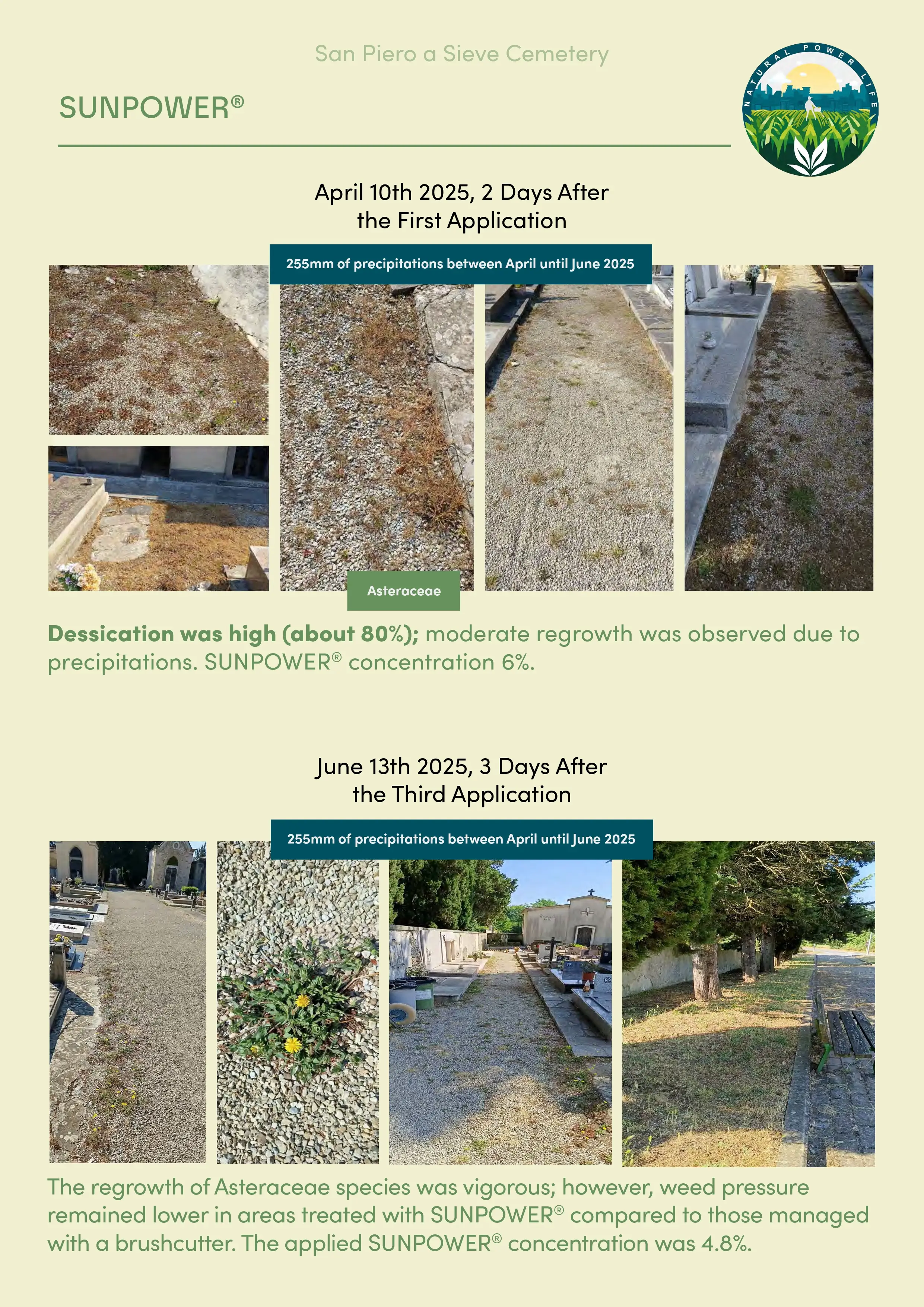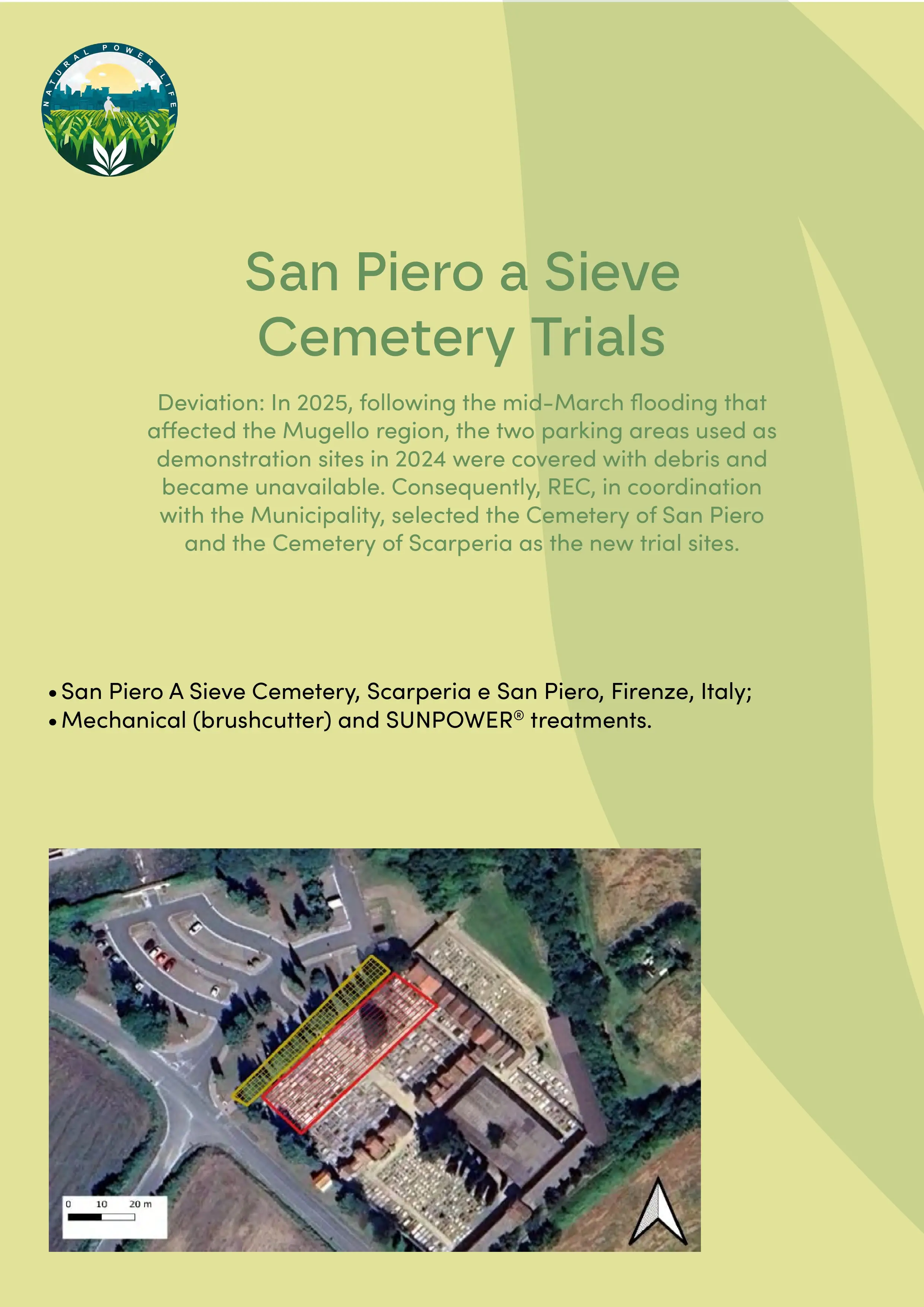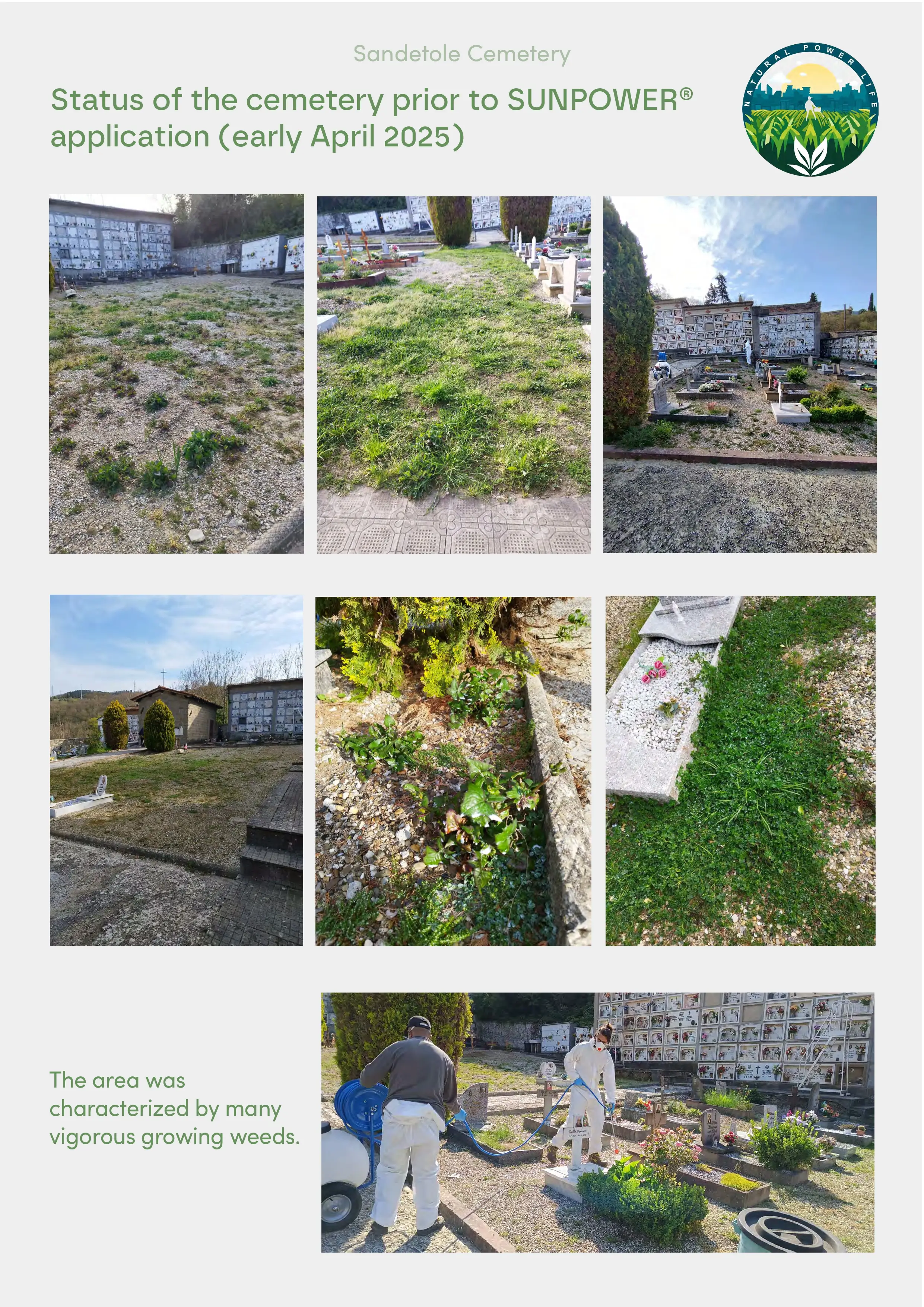 Sandetole Cemetery (Dicomano, FI): mechanical weeding (brushcutter) vs. SUNPOWER® • San Piero a Sieve Cemetery (Scarperia e San Piero, FI): mechanical weeding (brushcutter) vs. SUNPOWER®.